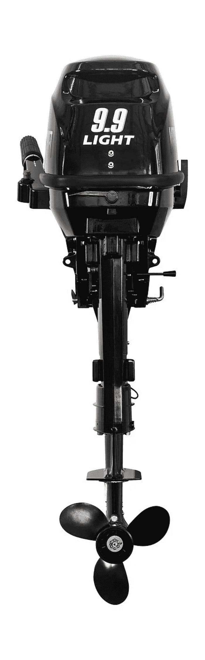 Данный подвесной мотор выдает 9.8 лошадиных сил (7.2 кВт). Учитывая объем 169 куб.см и диапазон оборотов 4500-5500, вы получаете мощный агрегат на румпельном (ручном) управлении.